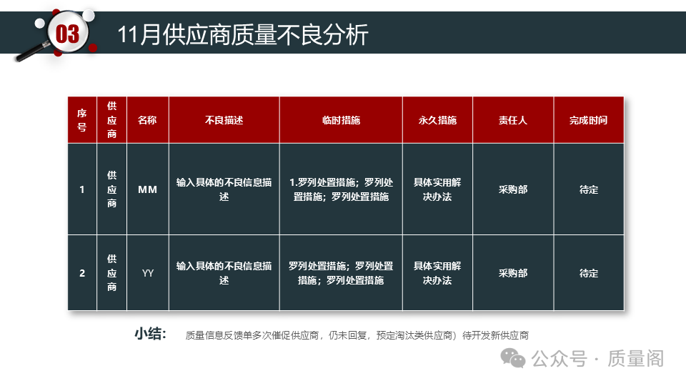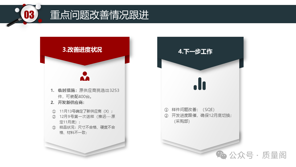 - 供应商管理强化:我们重新评估了供应商的资质和能力,与优质供应商建立了更紧密的合作关系。同时,我们加强了对供应商的质量监督和技术支持,提高了原材料和零部件的质量水平。这些措施的实施,使得供应商提供的物料质量得到了显著提升。