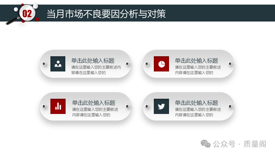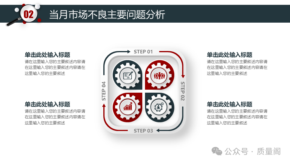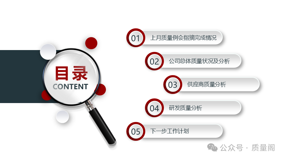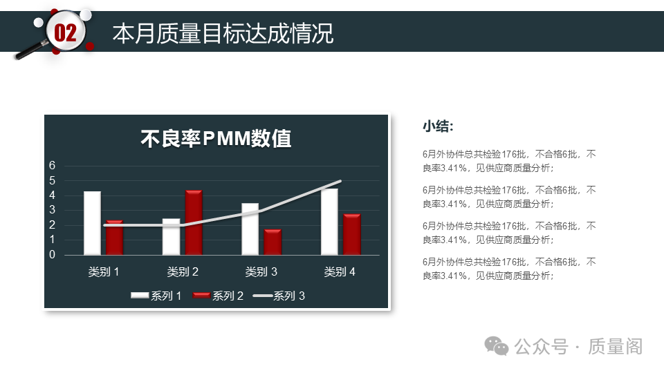 尽管在上月质量例会指摘的完成上取得了显著成效,但仍存在一些问题和不足。例如,部分员工对新设备和新技术的掌握还不够熟练,导致在操作过程中偶尔出现失误;部分供应商虽然质量有所提升,但仍存在批次间的不一致性和交货期的延误等问题。针对这些问题,我们将继续加强培训和监督,同时优化供应商管理机制,确保质量管理的持续改进。本月,公司总体质量状况呈现出稳步向好的趋势。具体表现为:产品合格率持续上升,客户投诉率持续下降,内部质量成本得到有效控制。这些数据的改善不仅反映了公司在质量管理上的努力,也为客户提供了更加可靠的产品和服务。产品合格率:本月产品合格率为XX%,较上月提升了XX个百分点。这主要得益于生产流程的优化、员工技能的提升以及质量检测体系的完善。然而,仍需注意的是,部分批次的产品仍存在质量问题,需要进一步加强质量控制和检测。客户投诉率:本月客户投诉率为XX%,较上月下降了XX个百分点。这反映了公司在客户服务方面的改进和努力。然而,仍需关注客户投诉的具体原因和反馈,以便及时改进产品和服务。内部质量成本:本月内部质量成本为XX万元,较上月下降了XX%。这主要得益于质量检测体系的完善和生产效率的提升。然而,仍需继续优化质量管理流程,降低不必要的浪费和成本。在总体质量状况向好的同时,我们也面临着一些质量风险和挑战。例如,市场竞争的加剧导致客户对产品质量的要求越来越高;新技术的引入和应用可能带来新的质量问题和挑战;供应链的不稳定性和不确定性也可能对产品质量产生负面影响。因此,我们需要持续关注市场动态和技术发展趋势,加强风险管理和预警机制,确保质量管理的持续改进和适应性。本月,我们对供应商的质量状况进行了全面评估和分析。结果显示,大部分供应商的质量水平稳定且有所提升,但仍有部分供应商存在质量问题。这些质量问题主要表现为原材料或零部件的缺陷、批次间的不一致性以及交货期的延误等。针对上月发现的供应商质量问题,我们采取了多项改进措施。例如,与供应商进行了深入沟通,明确了质量标准和要求;加强了对供应商的质量监督和技术支持;对部分不合格供应商进行了淘汰或重新评估。经过一个月的努力,这些措施取得了显著成效。具体表现为:供应商的质量意识明显增强,产品质量有所提升;交货期的准时率也得到了显著提高。为了进一步提升供应商的质量水平,我们提出以下建议:一是加强与供应商的沟通与合作,共同制定质量标准和要求;二是加强对供应商的质量培训和技术支持,提高其质量意识和操作技能;三是建立供应商质量考核和激励机制,对表现优秀的供应商给予奖励和优惠;四是加强对供应商的质量监督和检查,确保其提供的产品和服务符合质量要求。本月,研发部门在产品质量方面取得了显著进展。通过引入新的设计理念和先进的研发技术,产品的性能和稳定性得到了显著提升。同时,研发部门也加强了与生产部门和质量部门的沟通与协作,确保了新产品的顺利推出和质量的稳定性。针对上月发现的研发质量问题,我们采取了多项改进措施。例如,优化了研发流程,加强了研发过程中的质量控制和检测;引入了更先进的研发设备和工具,提高了研发的效率和准确性;加强了研发人员的培训和学习,提高了其专业素养和创新能力。这些措施的实施,使得研发质量得到了显著提升。为了进一步提升研发质量,我们提出以下建议:一是加强研发过程中的质量控制和检测,确保新产品的质量和稳定性;二是引入更先进的研发技术和工具,提高研发的效率和准确性;三是加强研发人员的培训和学习,提高其专业素养和创新能力;四是加强与生产部门和质量部门的沟通与协作,确保新产品的顺利推出和质量的稳定性。我们将继续优化生产流程,提高生产效率和质量水平。具体措施包括:引入更先进的生产设备和技术;加强生产过程中的质量控制和检测;优化生产线的布局和配置;加强员工的培训和技能提升等。我们将进一步加强供应商管理,确保原材料和零部件的质量稳定性。具体措施包括:建立供应商质量考核和激励机制;加强对供应商的质量监督和检查;与优质供应商建立更紧密的合作关系;对不合格供应商进行淘汰或重新评估等。我们将继续提升研发质量,推动新产品的创新和发展。具体措施包括:引入更先进的研发技术和工具;加强研发过程中的质量控制和检测;加强研发人员的培训和学习;加强与生产部门和质量部门的沟通与协作等。我们将进一步完善质量检测体系,提高检测的准确性和可靠性。具体措施包括:引入更先进的检测设备和检测方法;加强质量数据的收集和分析;建立质量问题的预警和应急机制;加强质量检测人员的培训和学习等。我们将继续加强质量文化建设,提高全员的质量意识和责任感。具体措施包括:开展质量宣传和教育活动;建立质量奖惩机制;加强质量管理的培训和学习;鼓励员工积极参与质量管理活动等。月度质量例会是公司质量管理的重要环节,通过深入剖析和规划,我们可以不断推动质量管理水平的持续提升。在未来的工作中,我们将继续坚持质量第一的原则,加强生产流程优化、供应商管理、研发质量提升、质量检测体系完善以及质量文化建设等方面的工作,为客户提供更加可靠的产品和服务,推